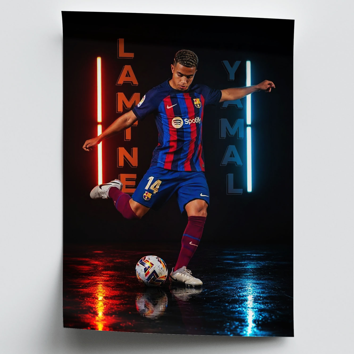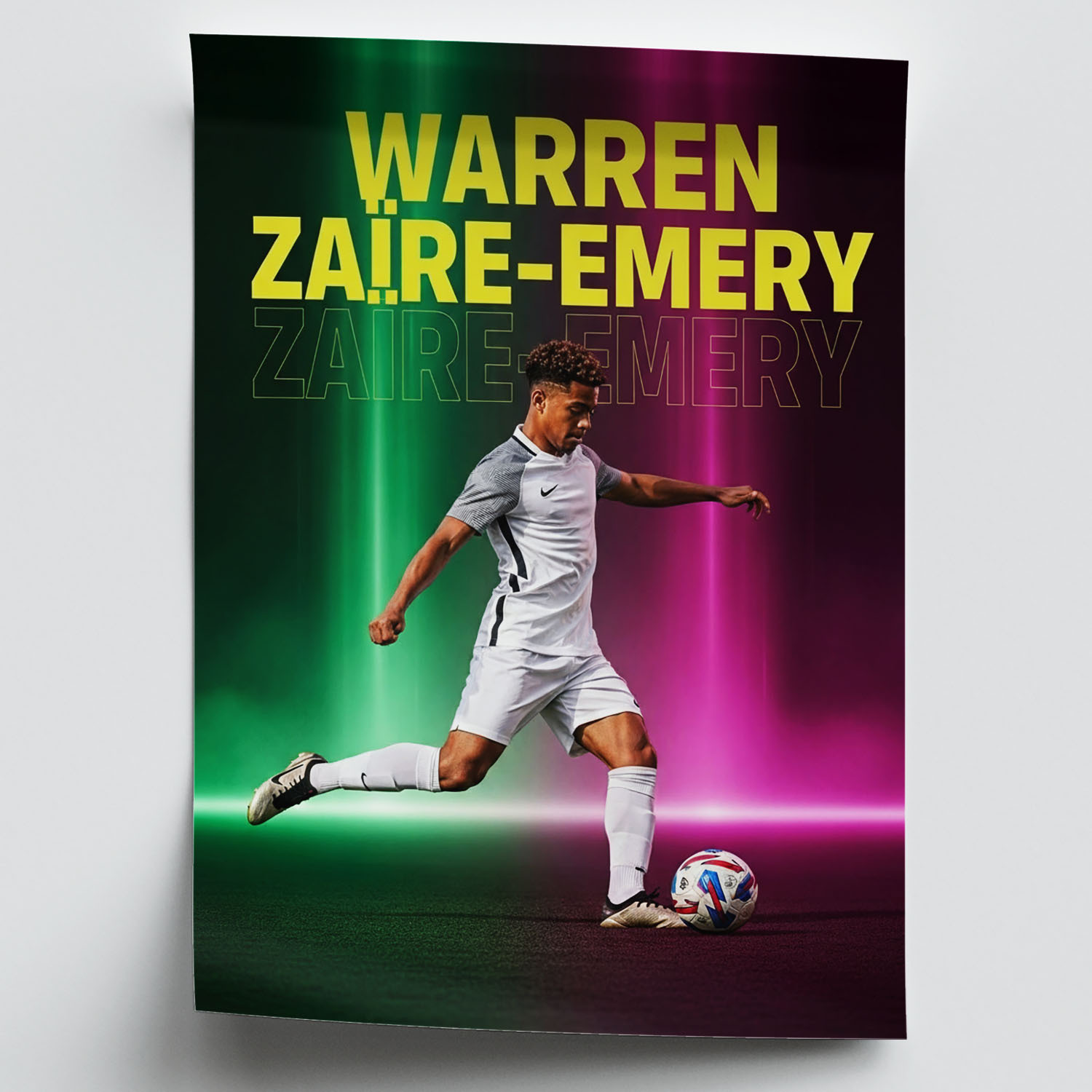 - Dynamisches Design: Jedes Poster besticht durch lebendige Farben und einen markanten, neonbeleuchteten Stil, der die Energie und das Talent der Spieler perfekt einfängt.