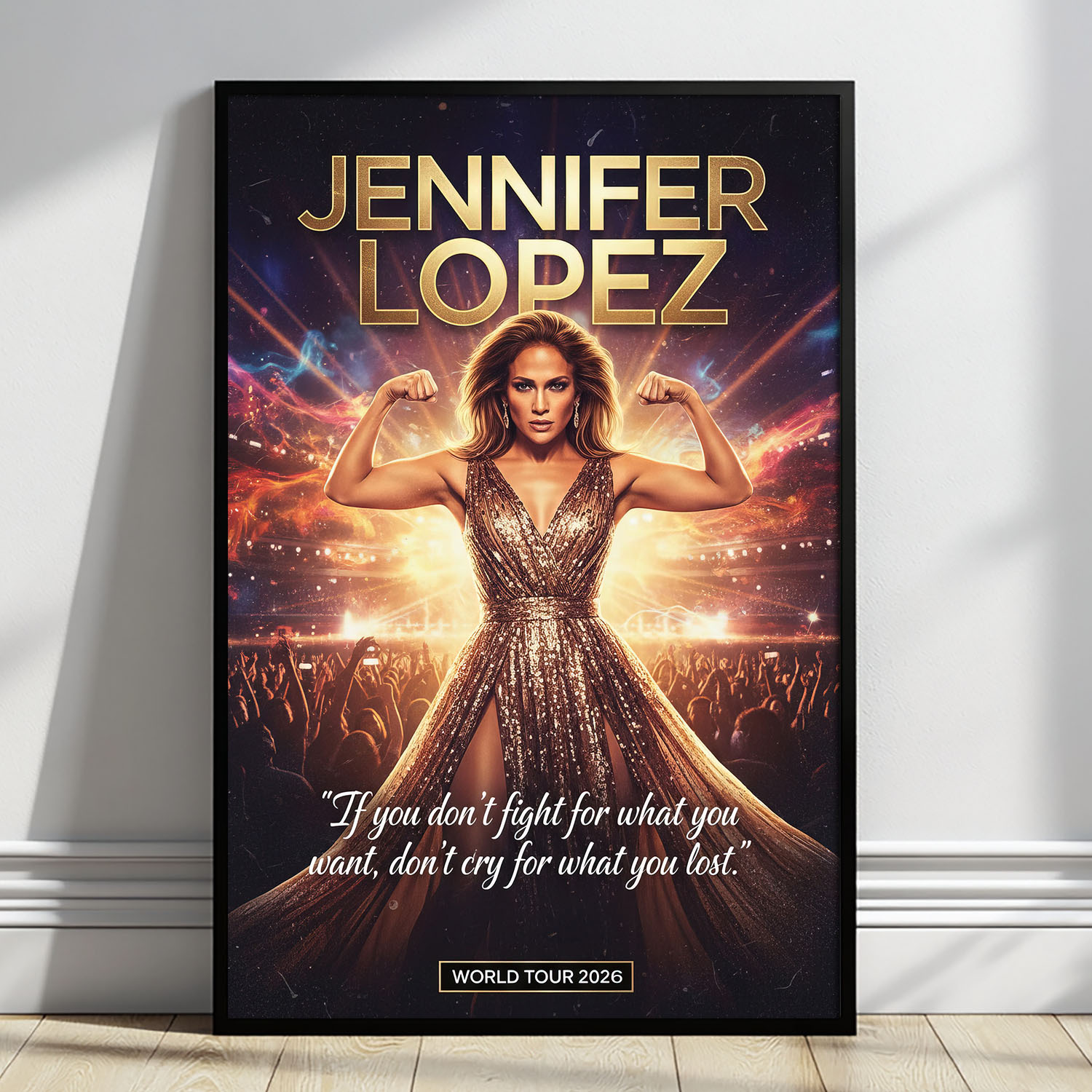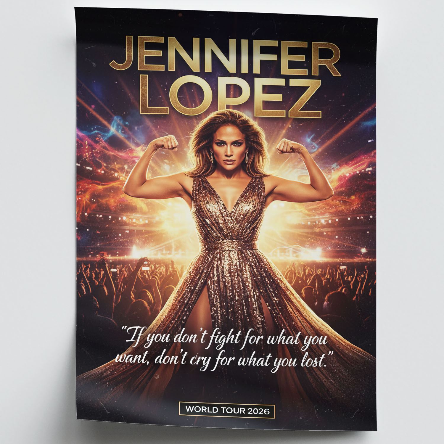 Her name, “JENNIFER LOPEZ,” is placed prominently at the top in large, bold, gold lettering.