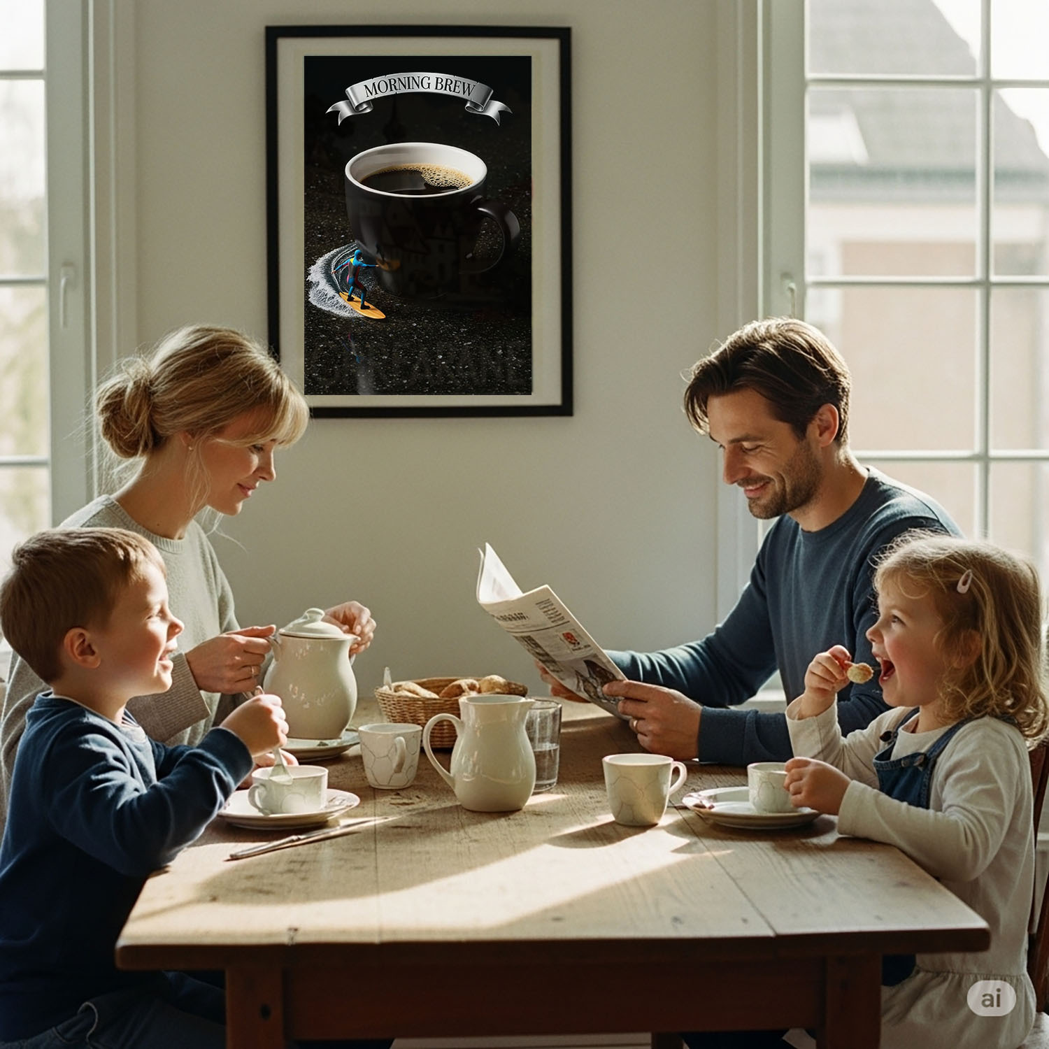 Wirkung: Die Poster sind sehr kreativ und augenzwinkernd. Sie kombinieren die Ästhetik von Art Déco/Vintage-Werbung mit einem modernen, surrealen Twist. Sie eignen sich ideal als dekorative Kunst für ein Coffee Shop, eine Küche oder ein Esszimmer.