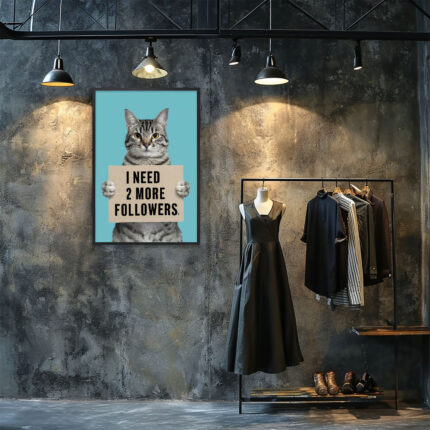 Schwarzer Rahmen Lustige Katze Sprüchebilder «I need 2 more followers» Poster Wandbild