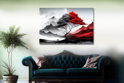 Grau Rote Abstrakte Bäume Landschaft – Kunstdruck auf Leinwand für Wohnzimmer Schlafzimmer Unternehmen