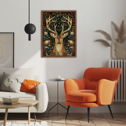 Fotoposter Großer Hirsch im Wald Natur Tierbild Leinwandbild Kunstdruck Wanddekoration