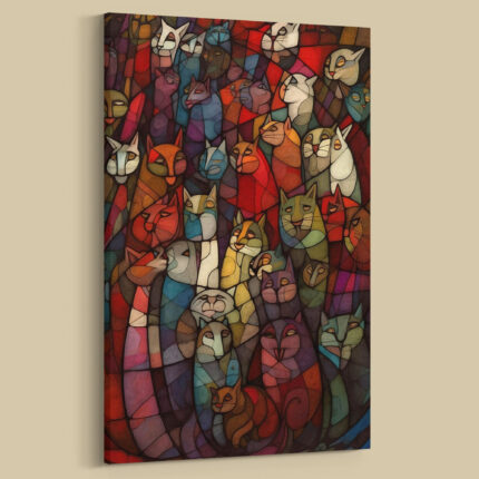 Walnuss Ein Meer bunter Katzen als Leinwandbild Kunstdruck mit Holzrahmen