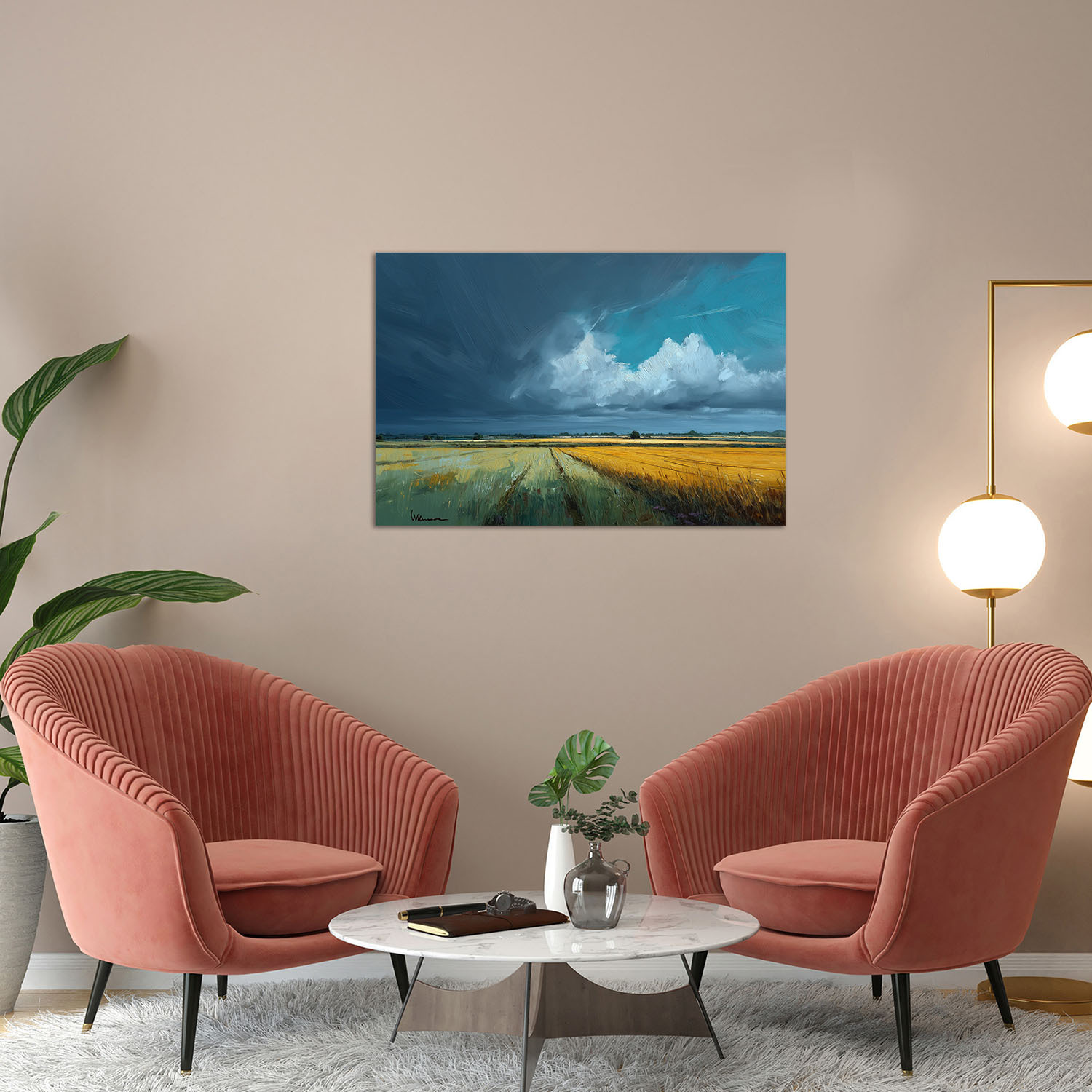 Sturmwolken Feld Leinwandbild Landschaft Malerei Dramatischer Himmel Natur