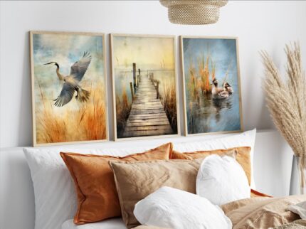 Am See Zeichnungen 3er Bilder Set ohne Bilderrahmen