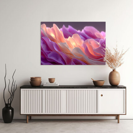 Zarte Rosenblütenblätter in Altrosa und Violett mit warmem Innenlicht in makrofotografischer Nahaufnahme