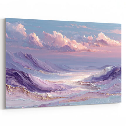 Romantisches Meeresgemälde mit violetten Wellen und zartem Pastellhimmel in impressionistischer Manier