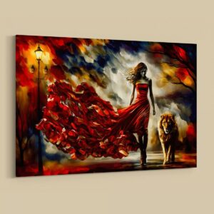 - Die Frau im rotem Kleid Gemälde als Kunstdruck auf Leinwand dekoratives Bild für Wohnzimmer und Schlafzimmer 3 Motive